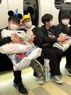 心配していた天気も全く問題なく、晴れ渡った春の1日を卒業生たちが思いっきり楽しみました。高校受験を終え、晴れ晴れとした笑顔でいっぱいでした。13日の夜、バスで出発。14日の1日を、開園から閉園までの12時間、ディズニーランドとシーを満喫しました。たくさんのお土産とたくさんの笑顔を持っての帰路、バスの中では夢の中です。すてきな思い出ができました。